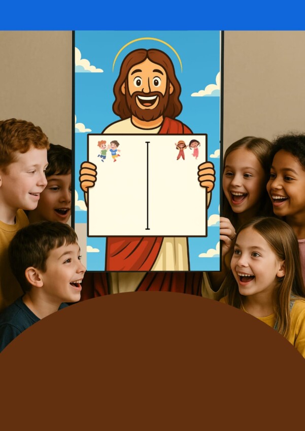 Kit infantil cristão completo com atividades e decorações temáticas “Diversão com Jesus”. Inclui painel gigante, identificadores, placas com mensagens de Jesus, certificado de Filho de Deus, cartões temáticos e imagens do Plano da Salvação. Ideal para culto infantil e salinha cristã. 🙌✨