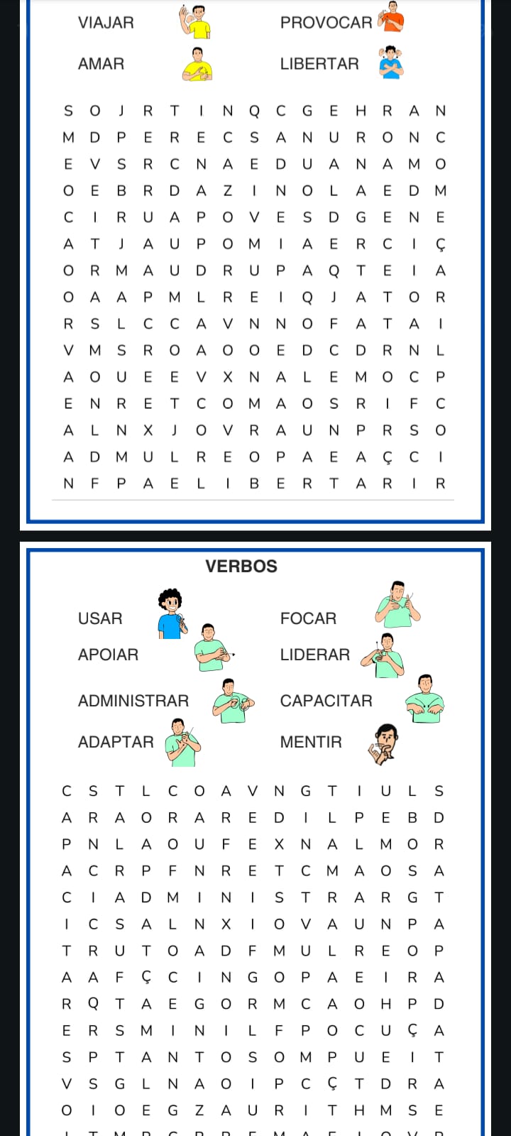 O Caça-Palavras Bilíngue Libras e Português é um material pedagógico desenvolvido especialmente para estimular o aprendizado de forma visual, acessível e divertida.