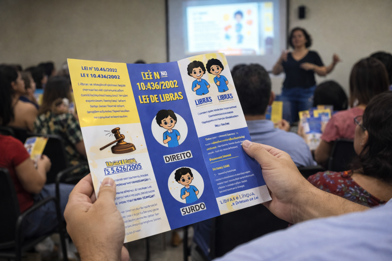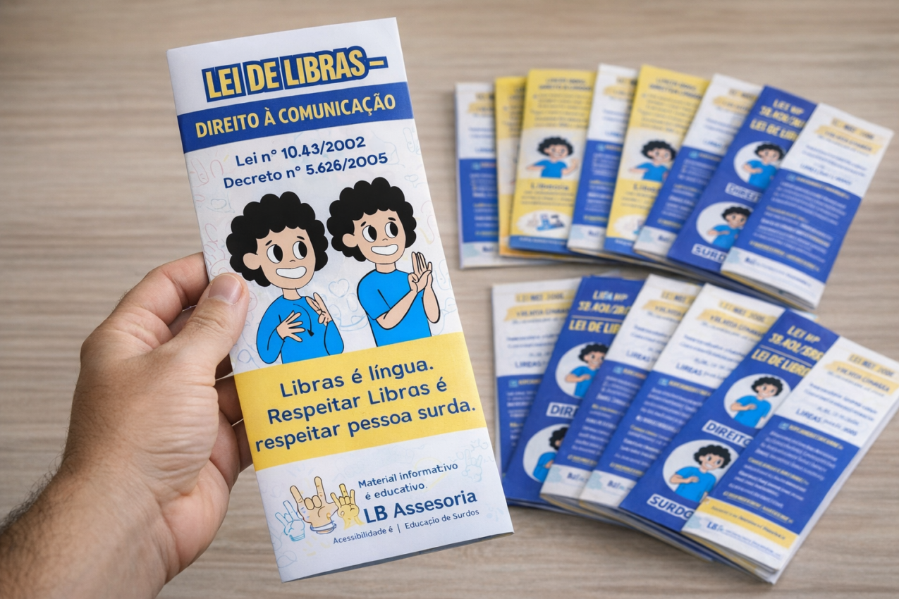 O Folder Educativo sobre a Lei de Libras é um material informativo, visual e acessível, criado para conscientizar sobre os direitos linguísticos da pessoa surda no Brasil.