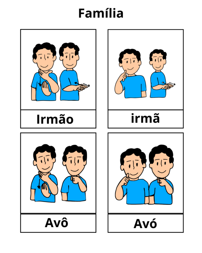 • Vocabulário em Libras (escola, família, emoções, corpo)