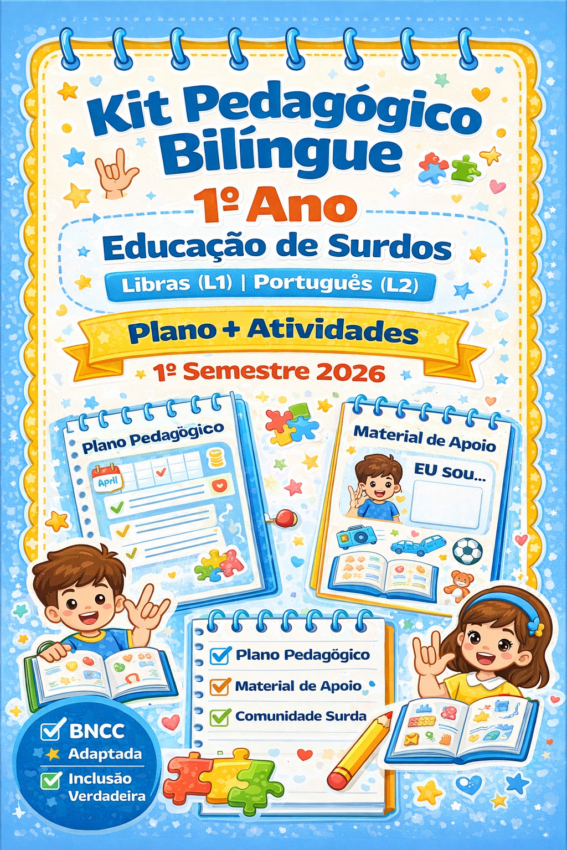 Kit Pedagógico Bilíngue – 1º Ano Educação de Surdos (Libras L1 | Português L2) 1º Semestre 2026
