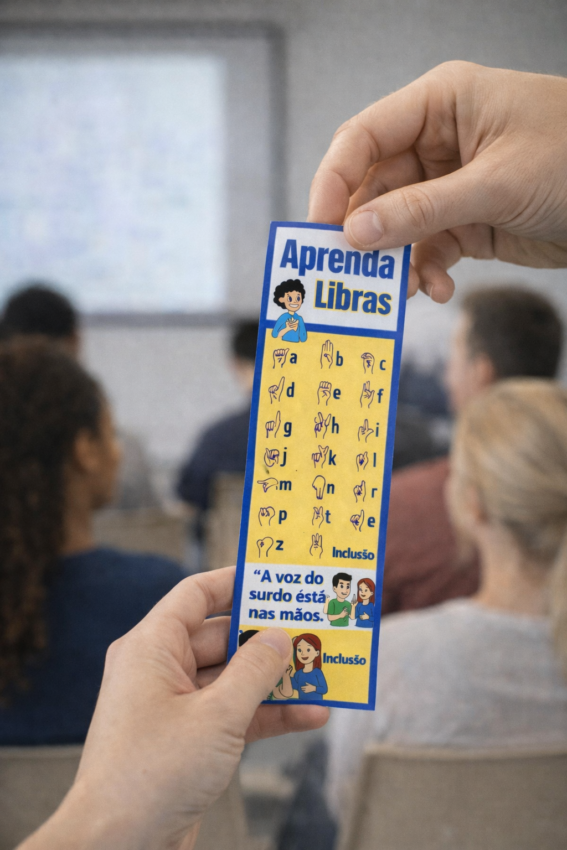 O Marca-Página Educativo em Libras – Aprenda Libras é um material pedagógico acessível, visual e funcional, desenvolvido para promover a aprendizagem da Língua Brasileira de Sinais (Libras) de forma prática e inclusiva.