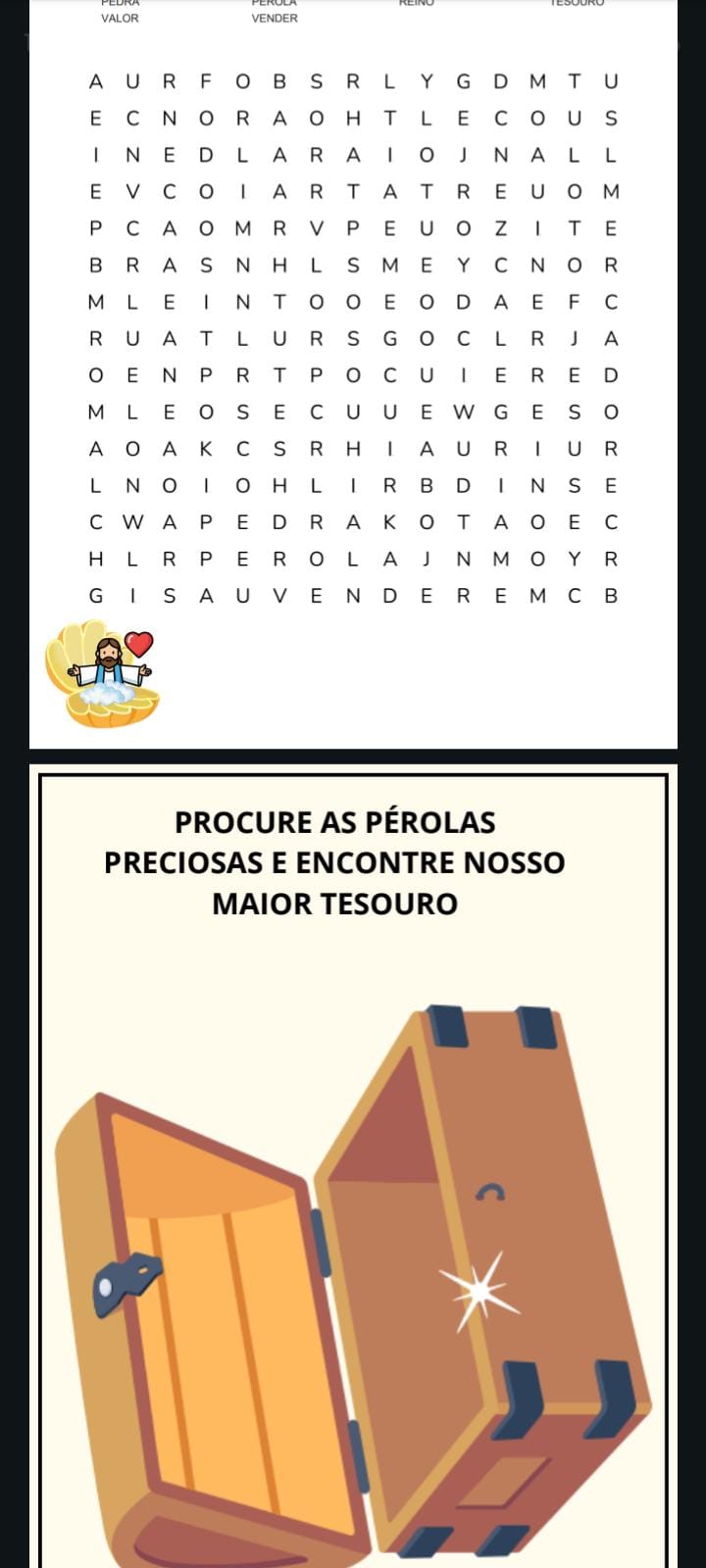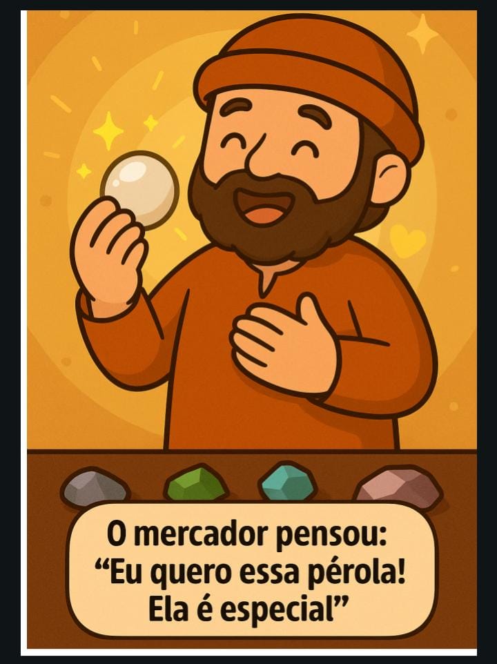 Baseado em Mateus 13:45-46, o material apresenta a história do mercador que encontrou a pérola preciosa, conduzindo a criança a compreender que Jesus é o maior tesouro de nossas vidas.