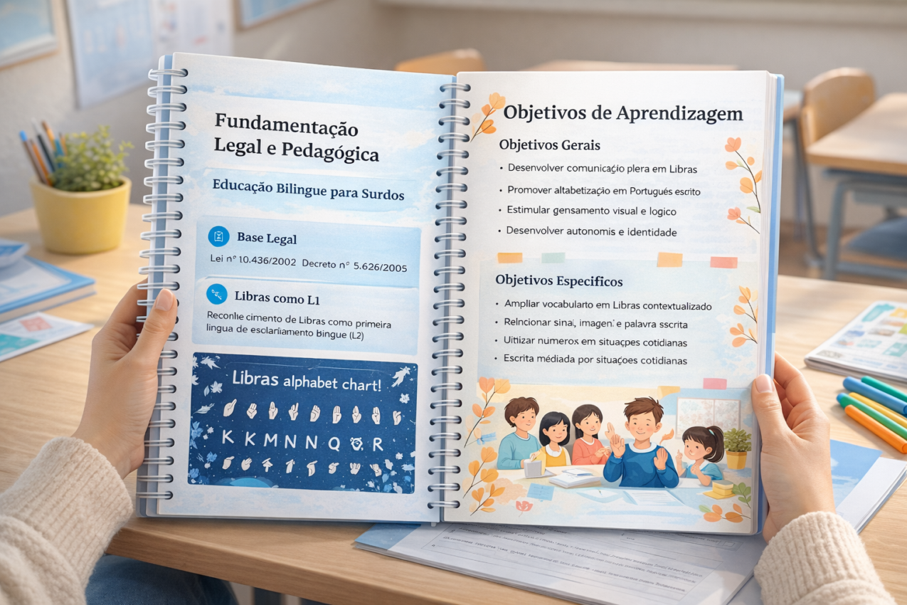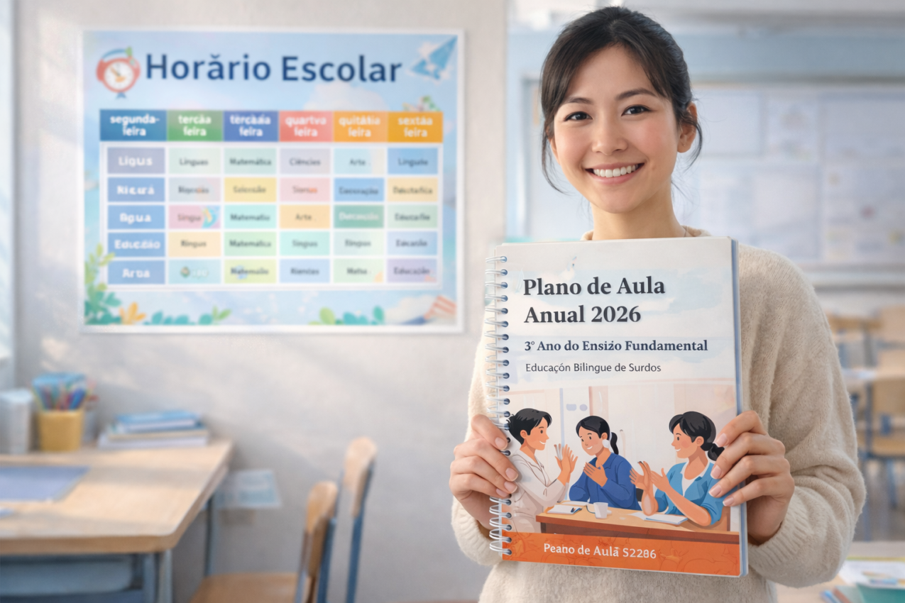 Os Planos de Aula Anuais 2026 – Educação Bilíngue para Surdos (1º ao 5º ano) foram elaborados com base nas Diretrizes da Educação Bilíngue de Surdos, respeitando a Libras como primeira língua (L1) e o Português escrito como segunda língua (L2).