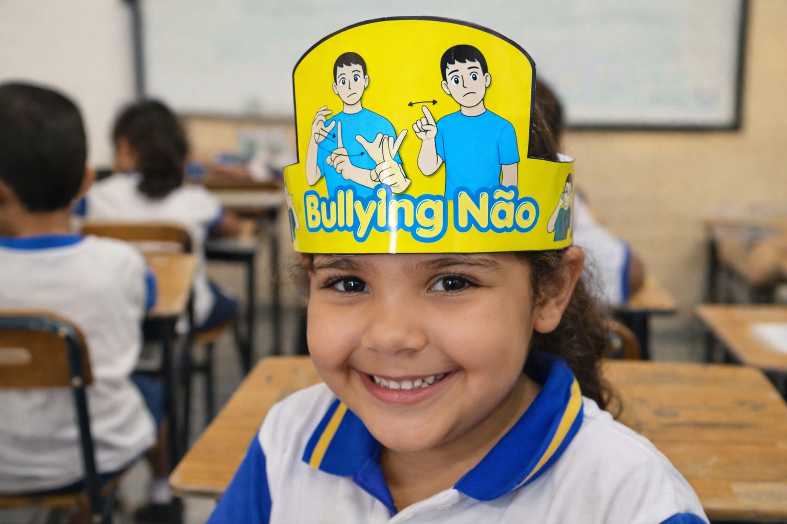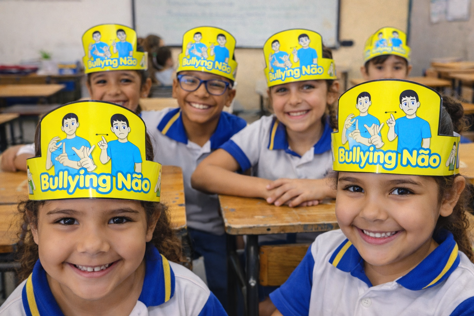 A Viseira “Bullying Não” em Libras é um recurso pedagógico bilíngue (Libras + Português) desenvolvido especialmente para trabalhar a conscientização sobre o bullying de forma visual, acessível e significativa com alunos surdos.